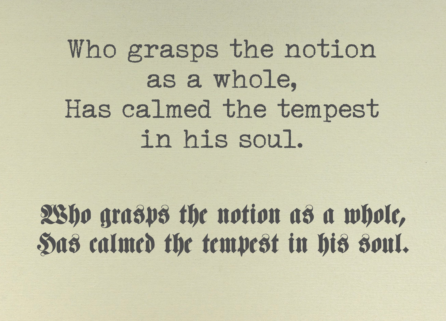 In the course of making the illustrations for this post, it occurred to me that some versions of Fraktur offered fewer obstacles to present-day readers than others. Thus, the typeface tyro might want to try out a variety of fonts, some of which would, no doubt, prove more congenial than others.