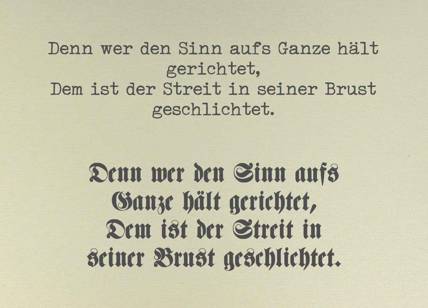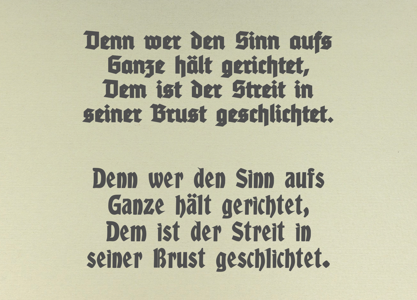 (I recommend Tannenberg Fett and Albert Text. The former looks a lot like a ‘special for titles and signs’ typeface that became popular after the ban on full-blooded Fraktur went into effect. The latter might be described as ‘gothic-adjacent’.)